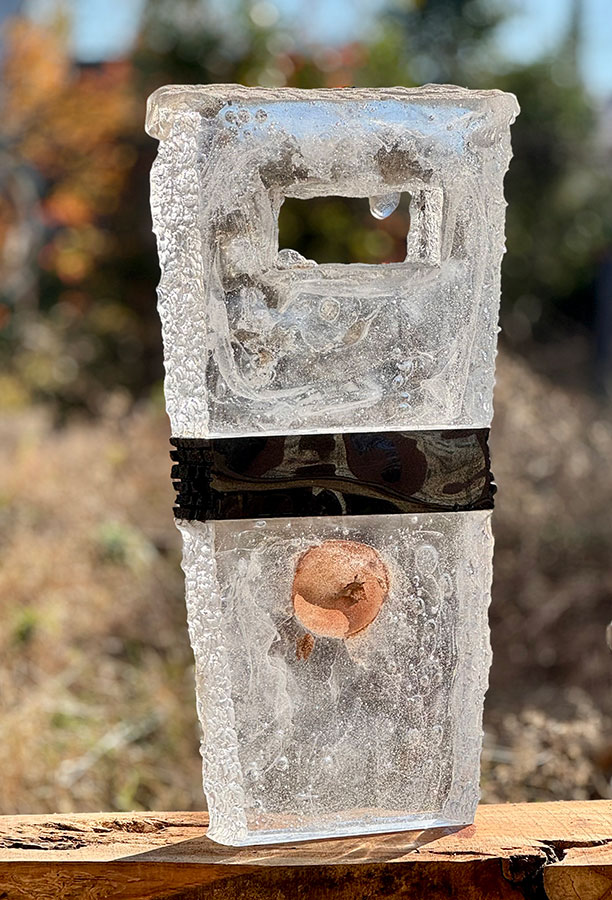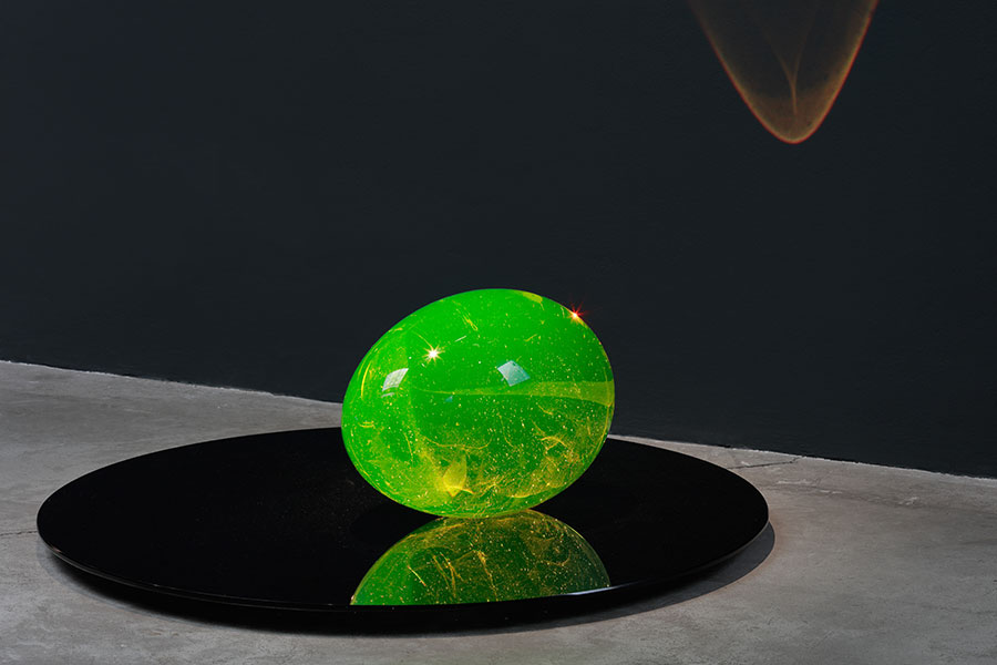 Clear Plated Gold Egg 1/6, 2024; 28.5 x 42 x 28.5 centimeters; clear optical glass
