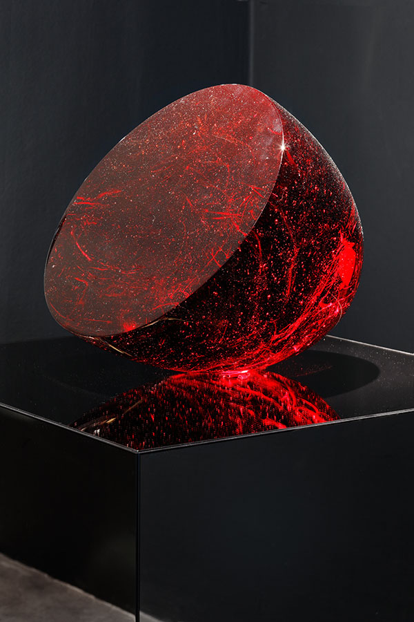 Red Half Egg 1/6, 2023; 29 x 32.5 x 29.5 centimeters, red composite glass