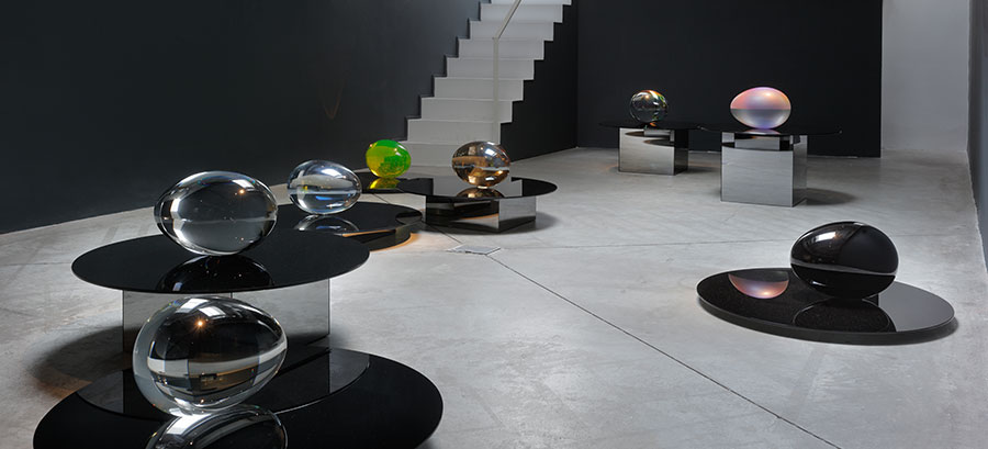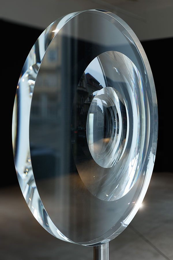 Big Cylinder with Curved Surfaces 1/6, 2022; 59.5 x 59.5 x 5 centimeters; clear optical glass
