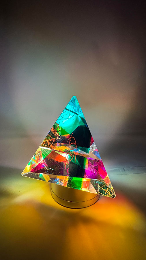 Small Tetrahedron; 5 x 6 x 5 inches; cold worked glass