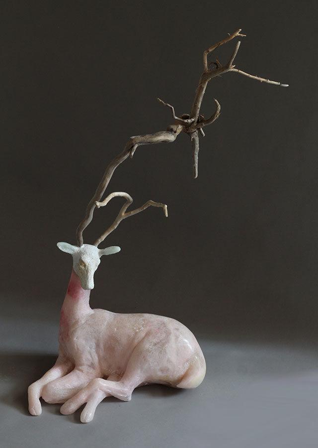 In her art, Christina Bothwell mines a fertile subconscious landscape and gives material form to emotions that lie beneath the surface. A lifelong lucid dreamer, she explores a mystical terrain many of us choose not to travel. Curators and critics have hailed her as a gifted storyteller creating fairy tales for grown-ups and her sculptures have been called “uncanny” and “the surreal stuff of dreams, memories, and the spirit world.” They are the 3-dimensional equivalent of figurative language expression, and affect viewers in unusually vivid ways.