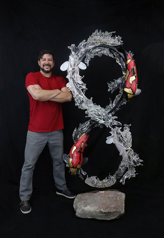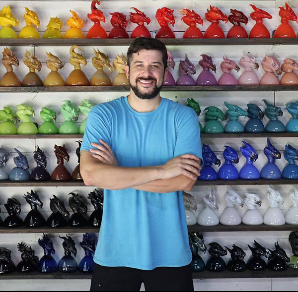 Garmezy’s social media platforms reach millions of followers monthly, allowing him to connect with clients worldwide. He maintains enduring partnerships with prominent glass-centric companies such as Kugler Colors, HisGlassworks, and Mobile Glassblowing Studios. His creative prowess extends to collaborations with industry giants such as Discovery+, Paramount, Marvel, and Universal Studios.