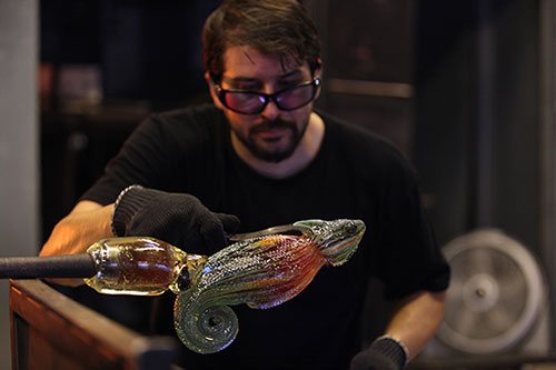 Garmezy's artistic inclination veers away from functional glassware, finding greater resonance in the medium's sculptural potential. Unlike other materials, glass cannot be sculpted by bare hands - the medium demands specialized tools, precise timing, and gravity to manipulate its molten form. Rooted in a profound reverence for the natural world, Garmezy’s sculptures depict animal imagery and natural forms. He strives to capture expression and movement in order to elevate the work from a sculpture to a story.